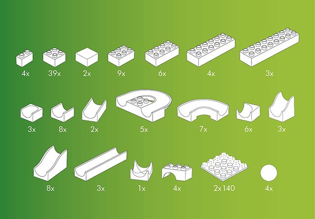 Store Gorinchem In stock The basic block box is perfect for novice marble track explorers. It contains everything you need to build spectacular marble runs: two base plates, lots of track elements, construction blocks, marbles and of course an extensively illustrated manual. 123-piece set offers endless possibilities for endless fun.