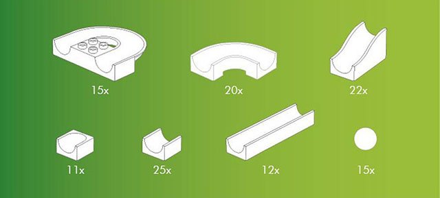 Store Gorinchem Not in stock The Hubelino marble run quickly brings adventure and learning fun to the nursery. With this set, the range of building blocks is usefully expanded with an additional 120 track elements and marbles. Now even bigger marble runs can be built. With this addition, the possibilities of the marble run can be developed individually and even more creatively. Due to a large amount of elements and building blocks in various shapes, colors and sizes, there are endless combination possibilities, from simple constructions to complex scaffolding, all of which give immense pleasure. Children develop in a playful way in this way. The little master builder becomes familiar with gravity and acceleration, improves their motor skills, their creativity and their logical thinking. The Hubelino block system is 100% compatible with building blocks from other manufacturers. They do not wobble, do not slip or fall over. To ensure that the marble always rolls safely into the target, we at Hubelino pay attention to good design, accuracy and quality. All Hubelino products are responsibly manufactured in Germany from high-quality ABS plastic, comply with European EN71 standards for children's toys and carry Bureau Veritas' CE mark for product safety.