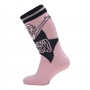 Soft and comfortable LEGO Friends socks with 3 pairs per package. The first pair is light pink and has a print of various hearts and asterisks, the second pair is light pink and has an imprint of the text 'Girls Rock' and the last pair is light gray and has an imprint of two light pink lanes and a light pink LEGO heart .