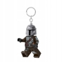 A LEGO Star Wars Keychain of a LEGO minifigure Din Djarin Mando. The keychain has movable arms and a bright LED light in both feet. Nice for a (school) bag, jacket or bunch of keys.