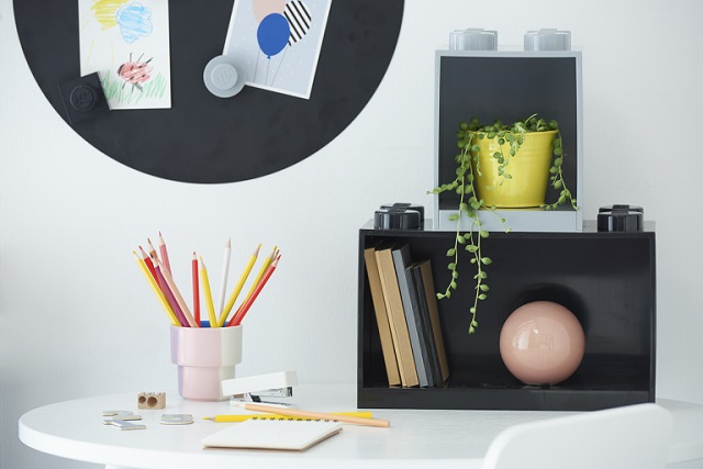 Books, toys, souvenirs and more fit into this stylish white LEGO Iconic wall shelf brick with 8 studs. You can attach this wall shelf brick to the wall or place it on a table or shelf. This iconic wall shelf brick is very decorative to decorate a kitchen, children's or living room and to combine with the desk drawers and mini storage heads.