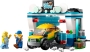 Head over the LEGO City Carwash. Drive through to activate the spinning washer brushes. Tip the dispenser to sprinkle the car with soapsuds. Then position the fans to dry your vehicle before driving round to top up your tyre pressure at the pump. Washing your car has never been so much fun!