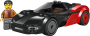 • Lift the rear hatch of the small black and red sports car to access the toy battery pack and put the driver minifigure behind the wheel for hours of foot-to-the-floor action