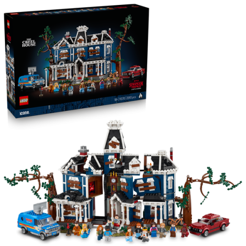 Enter the Upside Down with the LEGO Icons Stranger Things: The Creel House (11370), a mini house building kit for adults. This hauntingly detailed model of the ominous Gothic manor includes Steve’s car, the WSQK radio van and Will’s bicycle. The house features an ornate facade and open back with access to a hallway, dining room, sitting room, Alice’s and Henry’s bedrooms, the chilling upstairs landing and 2 attic spaces. Perfect for adult fans of LEGO sets and collectors of Stranger Things merchandise, this fantasy decor model kit includes 13 minifigure characters: Will, Mike, Lucas, Dustin, Vecna, Mr. Whatsit, Holly, Steve, Nancy, Robin, Jonathan, Max and Eleven. Build the house boarded-up or with the boards removed for a captivating display and pull the corners of the building to unveil Vecna’s interdimensional Mind Lair. Build smarter with the LEGO Builder app – zoom, rotate in 3D, track your progress and follow step-by-step digital instructions. Contains 2,593 pieces. - Explore the Upside Down with the LEGO  Icons Stranger Things: The Creel House (11370) building set for adults, a detailed model of the eerie Victorian manor - Explore 7 furnished spaces including the hallway, dining room, sitting room, Alice’s and Henry’s bedrooms, the chilling upstairs landing and 2 attic spaces - Expand the Creel House model to unveil Vecna’s interdimensional Mind Lair, complete with the haunting grandfather clock - Craft a detailed depiction of the Creel House boarded up or with boards removed, plus build Steve’s car, the WSQK radio van, Will’s bicycle and 13 Stranger Things characters - Celebrate a birthday or special occasion with a LEGO model kit for fans of Stranger Things merchandise and fantasy decor - Get ready to build like never before with the LEGO Builder app, where you can save sets, track your progress, zoom in and rotate your set with 3D building instructions - Discover the inspiring range of LEGO building sets (sold separately) designed specifically for adults - The Creel House model in this 2,593-piece LEGO Icons Stranger Things: The Creel House model kit measures over 29 cm (11.5 in.) high, 50 cm (20 in.) wide and 17 cm (7 in.) deep