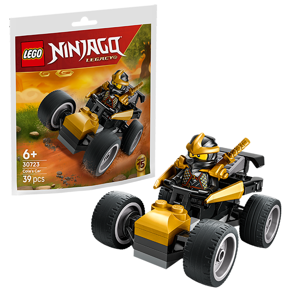 Kids aged 6 and up can role-play road action with a mini-version of a supercool ninja car, driven by a Cole minifigure with a golden sword.