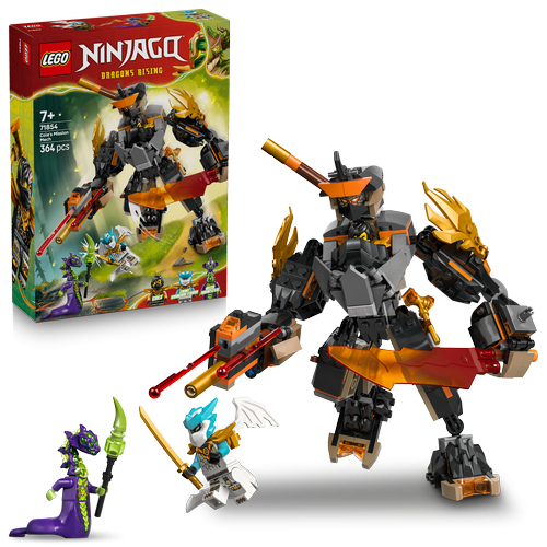 Boys and girls ages 7 and up will love building this LEGO NINJAGO Cole’s Mission Mech & Dragon Zane (71854) ninja toy and recreating scenes from season 4 of the NINJAGO Dragons Rising TV show. This playset features a mech toy with posable head, arms, shoulder armor, fingers, legs and ankles, plus a cockpit to place a minifigure inside. The mech comes with 3 weapons: a sword, a staff and a spring-loaded blaster with 2 darts, which kids can swap with weapons from the Riyu Ninja Dragon (71855) set (sold separately). This NINJAGO toy also comes with 3 minifigures: Cole with a hammer accessory, Zane Dragon Form with a sword and an Acid Monster with a staff for role-play battles. The LEGO NINJAGO range of building sets for kids includes mechs, dragons and temples for fans to enjoy ninja action. Kids can build each playset with confidence using the LEGO Builder app – zoom, rotate in 3D and track progress with easy-to-follow digital instructions. - Cole’s Mission Mech & Dragon Zane (71854) building toy lets boys and girls ages 7 and up recreate adventures from season 4 of the NINJAGO Dragons Rising TV show - The mech has a posable head, arms, shoulder armor, fingers, legs and ankles, a cockpit in its chest to place Cole, plus a backpack to store its weapon accessories - This LEGO mech set includes Cole with a hammer accessory, Zane Dragon Form with a sword and an Acid Monster with a staff for fans to play out good vs. evil battles - Mech comes with 3 weapons: a sword, a staff and a spring-loaded blaster with 2 darts, which can be swapped with weapons from Riyu Ninja Dragon (71855), sold separately - This NINJAGO playset provides a fun build-and-play experience and is a ninja gift for kids with a passion for fantasy and adventure toys - Discover other LEGO NINJAGO kids building toys (sets sold separately) featuring detailed dragons, temples and vehicles - This extensive collection of kids’ toys lets ninja fans and children escape into an immersive fantasy world for imaginative play with their ninja heroes - This 364-piece ninja toy playset features a mech toy standing over 7.5 in. (19 cm) tall