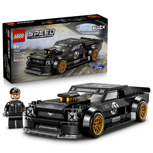 Celebrate the distinctive design and horsepower of Ken Block’s ’65 Ford Mustang Hoonicorn V1 (77262) with this awesome LEGO Speed Champions model. For the first time, this Mustang toy car lets fans of Ken Block’s viral YouTube videos build, play with and display one of the most iconic custom vehicles ever. This LEGO replica for boys and girls ages 9 and up features details from the real-life vehicle co-created by Block and HOONIGAN for their Gymkhana SEVEN film in Los Angeles in 2014, including exposed velocity stacks on the hood, custom wheels, and his iconic number 43 logo. The race car set also comes with a Block minifigure wearing a Hoonicorn hat and jacket, plus an alternative helmet. LEGO Speed Champions sets make great gifts for kids and let them create replica models from an extensive range of famous vehicles. They can also build with confidence using the LEGO Builder app – zoom, rotate in 3D and track progress with easy-to-follow digital instructions. - Build, display and race this LEGO Speed Champions Ken Block’s ’65 Ford Mustang Hoonicorn V1 (77262) for boys, girls and car fans ages 9 and up - This building kit includes a Ken Block minifigure wearing a Hoonicorn hat and jacket, plus an alternative helmet, to wear behind the wheel for high-speed action - Includes details from the vehicle co-created by Ken Block and HOONIGAN for their Gymkhana SEVEN film in 2014, including exposed velocity stacks on the hood and custom wheels - After car fans have enjoyed playing out racing action with this collectible Mustang toy car, they can display it in their room on a shelf, desk or bedside table - This model car kit provides a fun build and play experience and makes a great gift idea for kids ages 9+ and adult model collectors - Discover more LEGO Speed Champions car playsets (sold separately) packed with authentic details - Create replica brick-built versions of real-life racing cars, supercars and popular cars from video games, TV shows and movies - This 345-piece model measures over 1.5 in. (4 cm) high, 6.5in. (16 cm) long and 3 in. (7 cm) wide